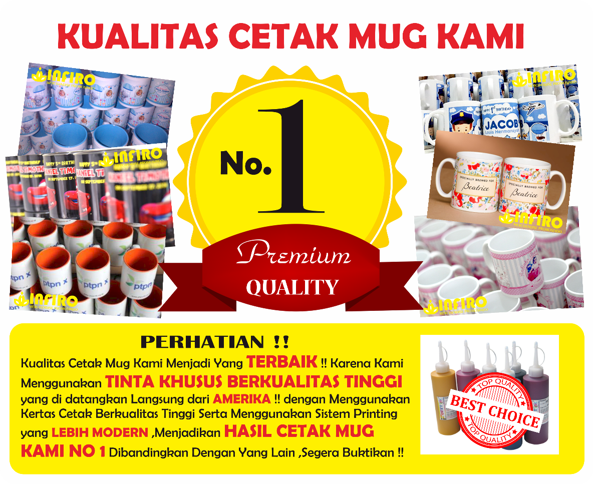 Mug Bandung Infiro merupakan produsen dan distributor pembuatan Souvenir Mug Murah di Bandung, pembuatannya dapat dicustom, dimana konsumen dapat memesan souvenir mug murah Bandung ini dengan foto/desain/gambar yang mereka inginkan.